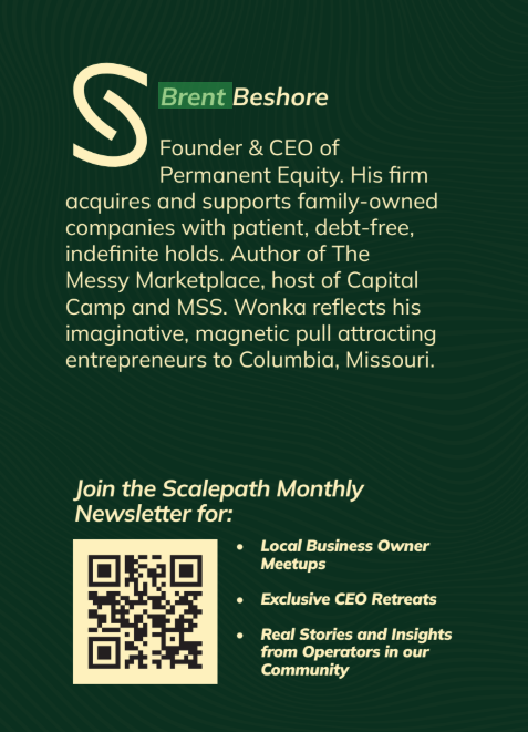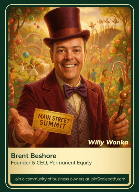 See this card of Brent Beshore? With the help of AI, a card game designer, a printing company, and a massive amount of my team's time, we designed and printed 121 unique trading cards featuring most of the speakers at Main Street Summit and a few Scalepath friends and members.